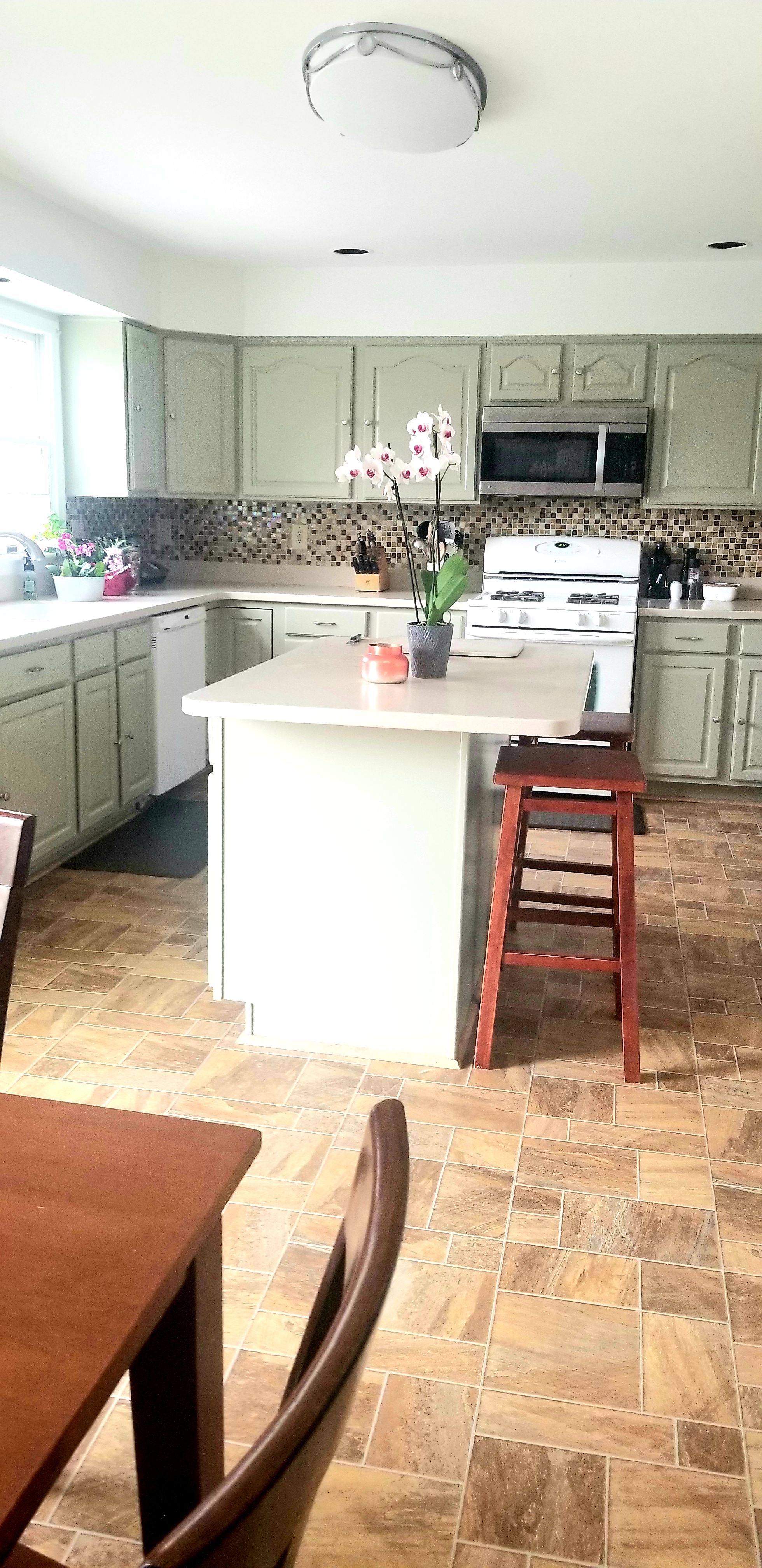 The task at hand for this project was to bring some updated panache to these cabinets without losing the refined feel of the kitchen. Our interior designer answered the call with Nantucket Gray, a neutral with cozy but still classic green undertones to liven and brighten things up a bit in the heart of this home.
