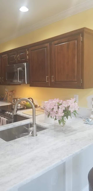 It's all so lovely to look at. We love this time of year and seeing our clients' homes newly decorated as well as all decked out for the holidays. The colors used throughout most of this main level makeover of a fashionable residence in the Bel Air community of Wellington Woods are Easter Lily (2150-70) for ceilings and walls and Cotton Balls (OC-122) for the trim. And although it's Christmas time, its wonderful to see spring-like off-whites trending instead of grays, which, let's be honest, can look a bit dreary in this season of winter and quarantines.