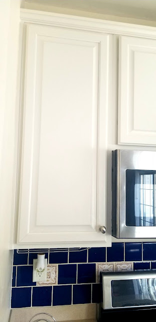 When we had the task of updating the cabinetry for a couple who, when they are not actually stealing away for a beach vacation, are busy planning their next beach vacation. So how to bring the beauty of coastal colors to their landlocked kitchen in Abingdon, MD? Balboa Mist (OC-27) and Downpour Blue (2063-20) are just the ticket! The pairing was so pretty, we decided to get the pantry door in on the coastal color act, too!
